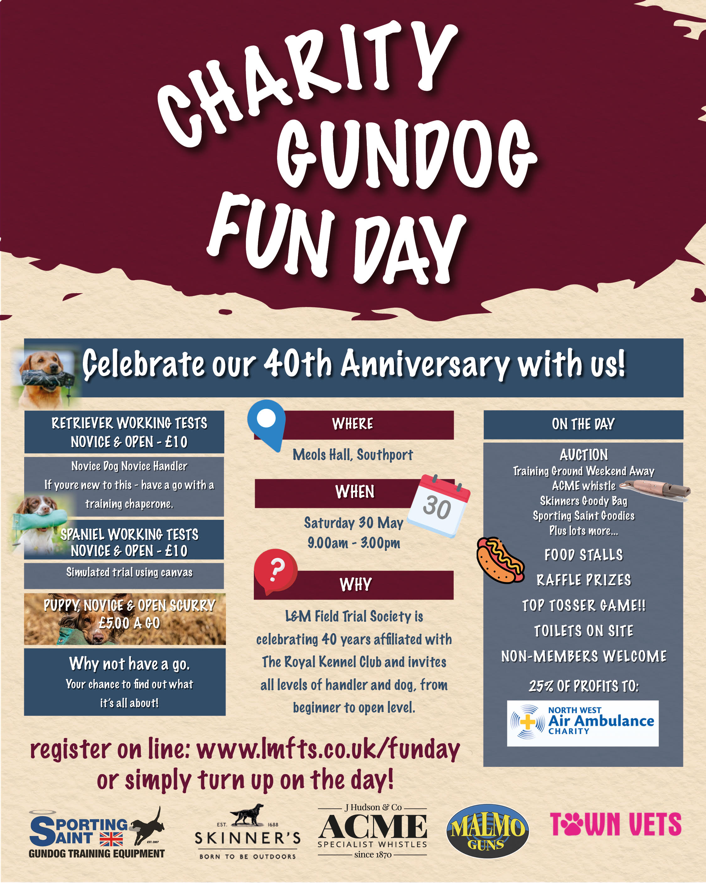 "On the 24th April 1985, a group of like minded people met to discuss the idea of forming a gundog club to fill what they saw as a gap in West Lancashire, with the view to providing training and eventually field trials. From this informal discussion, a club was formed of just 15 members. One year later, that number had grown to 106 and an application had been submitted to the Kennel Club to be registered - in 1986 the Lancashire & Merseyside Field Trial Society became affiliated.